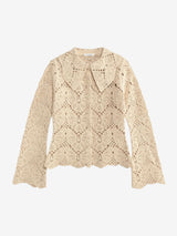 Den vakre og helt unike GWENEVERE skjorten er designet med et lekkert, heklet, sommerfugl motiv og vil bli en favoritt! Den er nett og feminin i passformen med en stor krage og litt trompet formet armer. Den er ikke foret, men det holder med en nude farget singlet under. Den er perfekt å style med våre MILIUM jeans, en dressbukse, et lekkert skjørt eller matchende CANTALA skjørt.