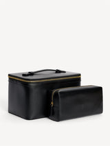AYA BEAUTY er det perfekte reisefølge for en travel Fashionista. Dette er vår lekre resirkulert skinnkvalitet og Beauty Boxen er romslig med flere lommer, både med og uten glidelås, samt en ekstra sminkepung som er uttakbar. Den er foret med et Cotton canvas materiale og er diskret merket med vårt nye emblem på utsiden. Den åpnes og lukkes med dobbel glidelås.