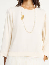 CHAKALLO smykket vil gi et sofistikert tilskudd til de lekre plaggene dine. Smykket er laget av ferskvannsperler og har vårt monogram på den ene siden, så det vil virkelig løfte ethvert antrekk.