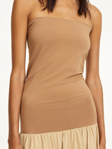 Den unike, enkle og behagelige MARCIELLA kjolen vil virkelig bli en favoritt. Kjolen er utrolig allsidig og den kan lett pyntes opp eller ned. Den er laget med en ned-brettbar tubetopp, så du kan style den både som kjole og som skjørt. Kjolen er laget i en utrolig myk bomulls kvalitet med en smal topp og et mer voluminøst skjørt og er vel så fin alene, som under en tykk strikk, en jeans jakke eller med en enkel topp over.