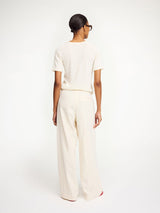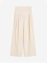 De stilige CYMBARIA buksene er laget med en skreddersydd look, med et høyt liv, legg i front og lommer i siden. Buksene har en androgyn look med en feminin touch og er brede i bena men nett over midje, hofte og bak. De har press både foran og bak, en skjult lomme på baken og er super stilig å styles til en tykk strikk i samme farger, en enkel t-skjorte eller en lekker bluse.
