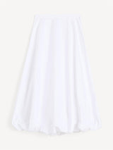 AUBREY skjørtet kan se enkelt ut ved første øyekast, men den utrolig lekre ballong avslutningen gjør antrekket alt annet enn enkelt. Skjørtet er nett over fotene og har en A-linjet passform, lukkes med en glidelås i siden og det er laget i organisk bomull.