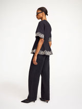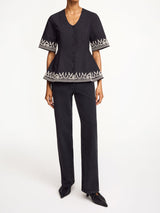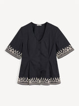 Den lekre MERLINA toppen er laget med vakre broderier, en nett og feminin passform og den lukkes med matchende knapper i front. Den har en dyp, dekkende og buet utringing, samt flatterende lengde på ermene. Style den med jeans, et lekkert skjørt eller en av våre fine dressbukser.