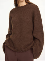CIERRA BRAID Mohair genser, med flette-strik Mørkebrun
