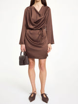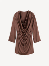 Den vakre og elegante CORNELIA kjolen er laget for festlige anledninger. Den er laget med en utrolig lekker og drapert utringing, avtagbart og justerbart belte i livet samt splitt nederst på de lange ermene.