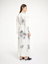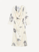 Den vakre og elegante CARRIE kjolen er laget for festlige anledninger. Den er laget med en utrolig lekker og drapert utringing, avtagbart og justerbart belte i livet, splitt nederst i siden, samt splitt nederst på de lange ermene.