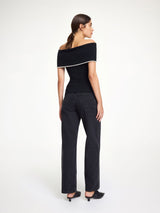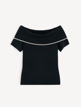 Den lekre HETHA toppen er både enkel og elegant og lett å pynte opp og ned til ulike anledninger. Blusen er kroppsnær og laget i en noe tykkere kvalitet med en stilig “off-shoulder” overdel med perler, nett passform og uten armer. Den er vel så fin å style til vårt lekre BOSHAN skjørt, som til våre tidløse VINOLA jeans.