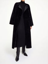 SANDRIA Lang Lammeskinns kåpe i Sort