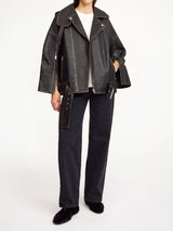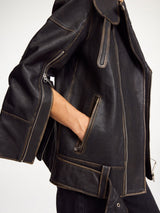 Den stilige BEATRISSE skinnjakken er laget i et mykt og smidig skinn med et tidløst og biker inspirert uttrykk. Den er tøff i uttrykket med kontrast sømmer, belte nederst, glidelås detaljer på ermene som gir mulighet til å åpne den opp langs ermene.