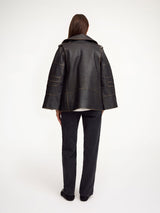 Skinnjakken er oversized i uttrykket, men allikevel ganske normal på størrelsen, da den er ganske normal over hoftene.