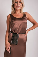 Den lille knuten kan du dra i og på den måten henger vesken fint rundt livet, som et alternativ til belte.
