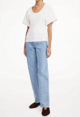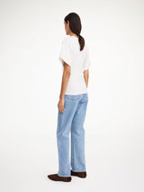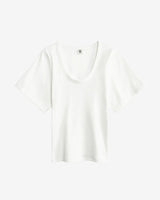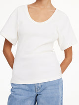 LUNAI t-skjorten er en videreutvikling av den klassiske t-skjorten med korte, trompetformede armer, nett kroppsform og en buet utringning. Den er laget i en deilig organisk bomulls miks, er ribbestrikket og blir en favoritt i skapet. Style den med alt fra vår MILIUM jeans, skinntights eller under en blazer.
