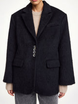 Den lekre BIENA blazeren er tilbake! Den er laget i en nydelig ull og alpakka-blanding har en oversized passform og lukkes med knapper i front. Den har lommer både i siden, på brystet og innvendig og kan brukes som et ytterplagg fra høst til vinter og som en blazer inne på vinteren.