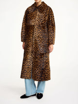 Den unike og vakre RAFAIA kåpen er laget i 100% kalveskinn og printet med et stilig og tidløst leopardprint. Denne lange kåpen er laget med lekre detaljer. Den lukkes med vår monogram glidelås i front, men har en splitt nederst, den har buede armer, lommer i siden og en utrolig lekker krage. Dette er en investering som du vil elske og bruke år etter år.