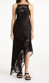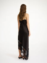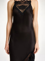 Den lekre, elegante og sexy LAYNEE kjolen har et sensuelt underkjole uttrykk med utrolig vakre blonde detaljer. Dette er den perfekte festkjolen med en asymmetrisk avslutning med generøse blonde detaljer nederst, samt. i utringingen. Den er perfekt alene, eller under en blazer. Den er også stilig under en tykk strikk, for å kun få frem skjørtet.