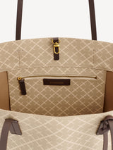 Den lekre Signature Flower vesken vår i den fine mellom størrelsen, i den klassiske beige og krem fargekombinasjon, med mørke stropper. Detaljert med en liten nøkkelring i skinn og skinn håndtak er denne vesken perfekt å ha med seg i hverdagen. Den har en innvendig lomme med glidelås, en hempe til å lukke og passer perfekt over skulderen eller på armen. Den styler opp ethvert antrekk.