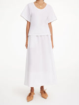 Det lekre og tidløse PHEOBES skjørtet er laget i en lett og deilig organisk bomulls kvalitet. Skjørtet er høyt på livet, har en løs i passformen, lommer i siden og en behagelig strikk i midjen. Her er styling mulighetene mange: bruk det over en bikini og sandaler på stranden eller style det med matchende topp, til en lekker bluse eller en deilig strikk. Midi-skjørtet blir en favoritt hos oss, hele året.