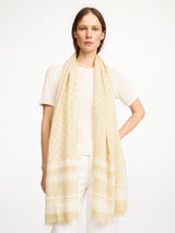 Dette stilige skjerfet er laget med en tidløs rektangulær form, i en super myk ull kvalitet, med vårt Signature Flowerprint. Skjerfet kan brukes rundt skuldrene på en kaldere dag, tett i halsen til en vinterkåpe eller bare hengende rundt halsen til en deilig strikk