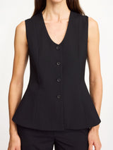 Den lekre MERLIN vesten er laget for å gi antrekket det lille ekstra. Vesten er laget med feminine detaljer, som en liten "peplum" kant, innsvingt liv og en nett splitt bak. Den lukkes med knapper i front og har en nett v-utringing. Style den med matchende CYMBARIA bukser eller ESMA skjørt. Den er også stilig med ADRIENNA blazeren over. Den er også lekker med jeans eller et enkelt skjørt.