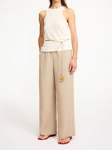 De super deilig CABELLO buksene er laget i en myk og deilig lyocell og lin miks, de har strikk i livet og lommer i siden. De har et avslappet uttrykk, men de kan lett pyntes opp med matchende HILAO blazer eller matchende LEEBA topp. Buksene har vide ben, men sitter nett over hoftene som gir de feminint, men avslappet uttrykk.