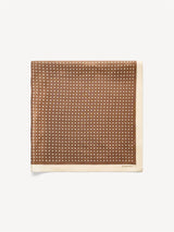 A repeat squared print lends the Velia silk scarf an elegant mood — ideal for infusing subtle pattern into neutral ensembles. Tie it around your neck, your wrist, or the handle of your handbag. Notice the small logo in its corner.