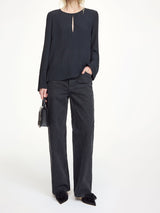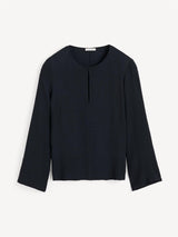 Den lekre, allsidige og tidløse MALUKKA blusen vil bli en klassiker i din garderobe. Den. er laget med en nett v-utringing i front, som lukkes med en liten hempe i halsen, splitt i siden og rette, løse ermer. Style den med våre CYMBARIA dressbukser, VINOLA jeans eller matchende LUCEE bukser.