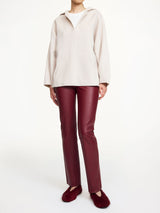 De super lekre og allsidige Florentina skinnbuksene er laget i en myk og deilig skinnkvalitet. Buksene har rette ben med en lang lengde, strikk i livet og et veldig flatterende snitt som samtidig er svært behagelige på. De kan styles til både hverdag og fest, og er utrolig fin med strikkegenser i hverdagen eller en festlig topp i helgene. Style de med alt fra boots til sandaler til pumps.