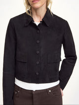 Det utrolig lekre og tidløse ANNIE jakken er laget i en nydelig semsket skinnkvalitet, har en nett lengde og vil være en klassiker i garderoben i mange år fremover. Det er laget med et minimalistisk uttrykk, lukkes med trykk knapper i front og kan styles på utallige måter. Style den med vårt lekre BOSHAN skjørt, VINOLA jeans eller matchende NOLA mini skjørt.