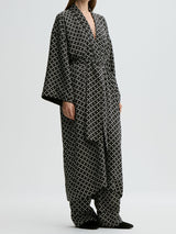 Den lekre nye KIMBER morgenkåpen er perfekt til å enten slappe av hjemme eller bruke som en kimono i hverdagen. Den er printet med vårt Signatur Flower print og har den klassiske kimono looken, men den kan også styles opp. Den har avtagbart belte i livet, den er perfekt og style med matchende AMANNA bluse og AMELIANO bukse.