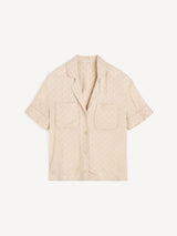 Den lekre nye NANNA blusen er perfekt til å enten slappe av hjemme eller bruke i solen. Den er printet med vårt Signatur Flower print og har den klassiske pysjamas looken, men den kan også styles opp. Blusen har knapper i front, brystlomme og den er perfekt og style med matchende LIANO shorts.