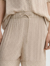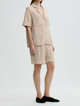 Den lekre nye LIANO shortsen er perfekt til å enten slappe av hjemme eller bruke i solen. Den er printet med vårt Signatur Flower print og har den klassiske pysjamas looken, men den kan også styles opp. Shortsen har strikk i livet, lommer i siden og den er perfekt og style med matchende NANNA bluse.