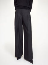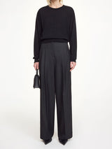 De stilige CYMBARIA buksene er laget med en skreddersydd look, med et høyt liv, legg i front og lommer i siden. Buksene har en androgyn look med en feminin touch og er brede i bena men nett over midje, hofte og bak. De har press både foran og bak, en skjult lomme på baken og er super stilig å styles til en tykk strikk i samme farger, en enkel t-skjorte eller en lekker bluse.