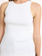 Denne tank-toppen er ribbestrikket og er laget i en deilig bomullskvalitet. Den har en naturlig stretch og er like fin alene som under en strikk eller blazer. Toppen er figurnær, har en lett bryte-inspirert rygg og er noe kortere i modellen enn den klassiske AMIEE tank-toppen.