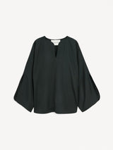 Den lekre CALIAS blusen er perfekt å kombinere til flere anledninger, da den lett kan pyntes opp og ned. Den er utrolig enkel i uttrykket, men med en nett utringing i halsen og splitt på ermene som gjør at den skiller seg fra de andre blusene dine. Style de til vide bukser, en enkel jeans, skinntights eller skjørt.